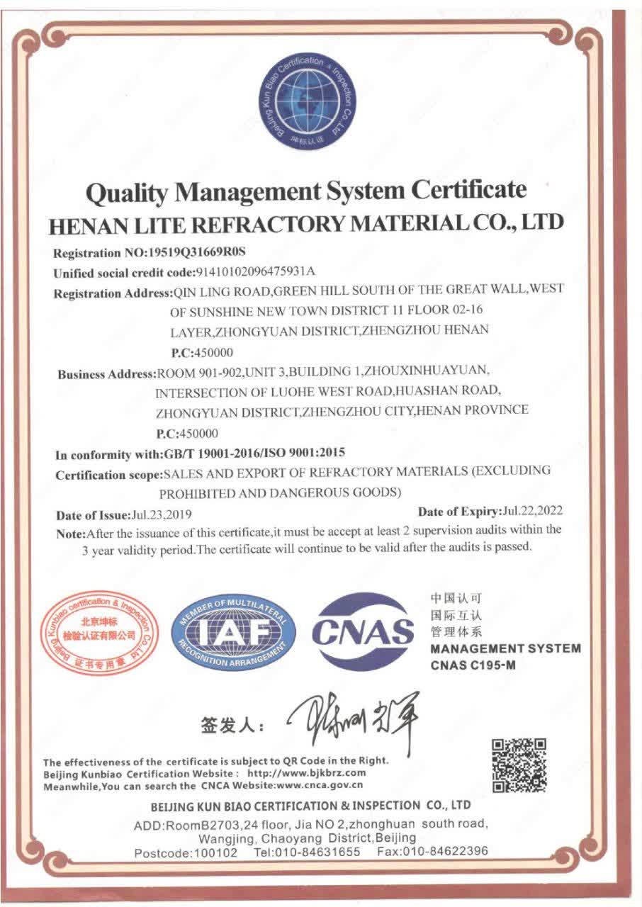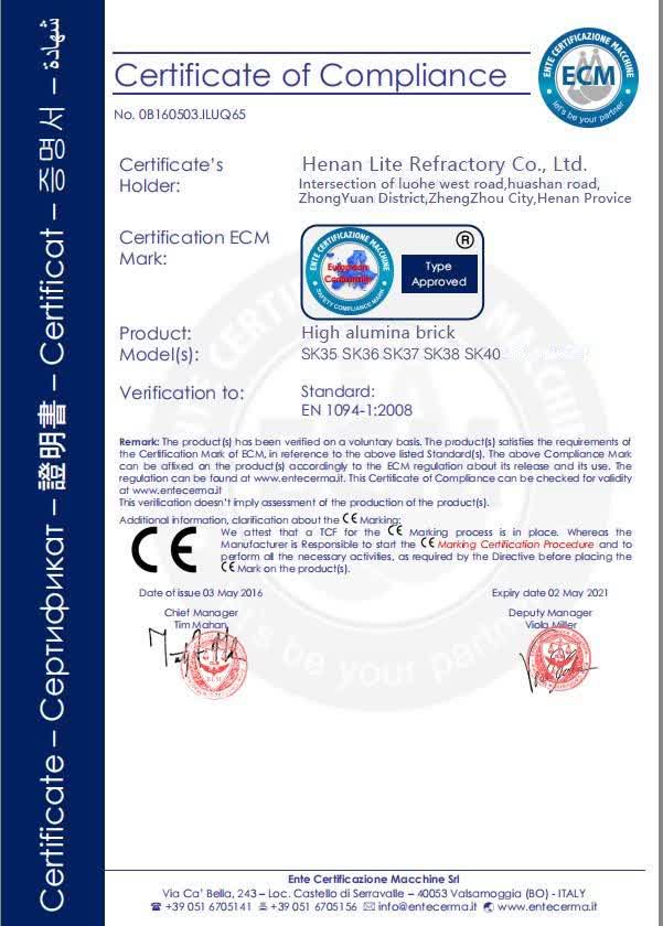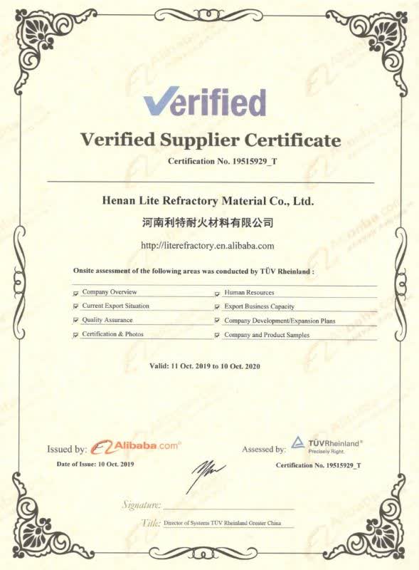 گواهینامه‌ها و تاییدیه‌های اخذ شده توسط شرکت Henan Lite Refractory Material Co., Ltd.